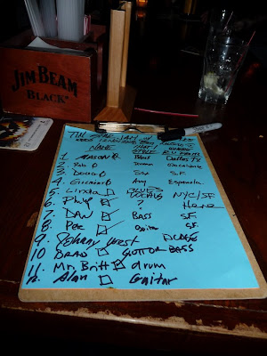 So, having set the stage, last Wednesday's jam was preceded by a Turkey Trot. Of which the Tin Star was stop number four out of seven. The rules of a turkey trot seem to require that a group of people run from bar to bar, drinking a beer immediately upon arrival. The winner gets a turkey. Many of the losers get to throw up somewhere en route.